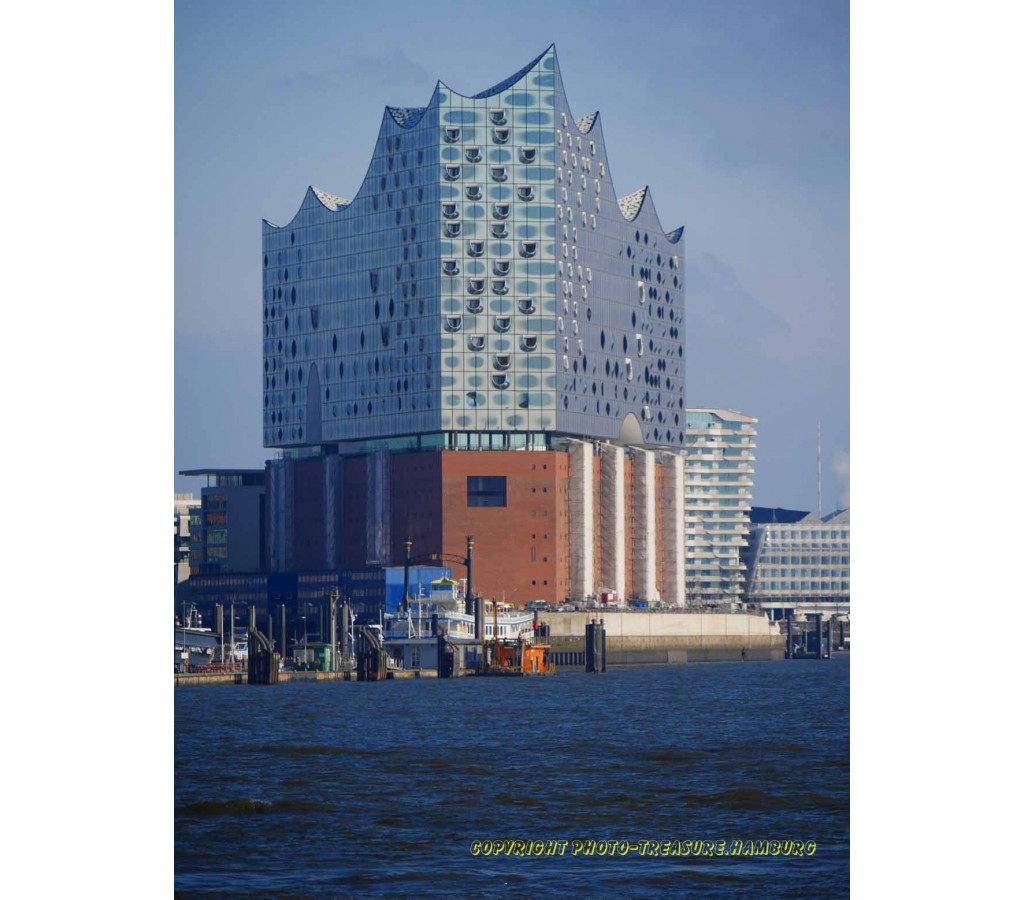 Blick auf die Elbphilharmonie vom Hafen, Westansicht.