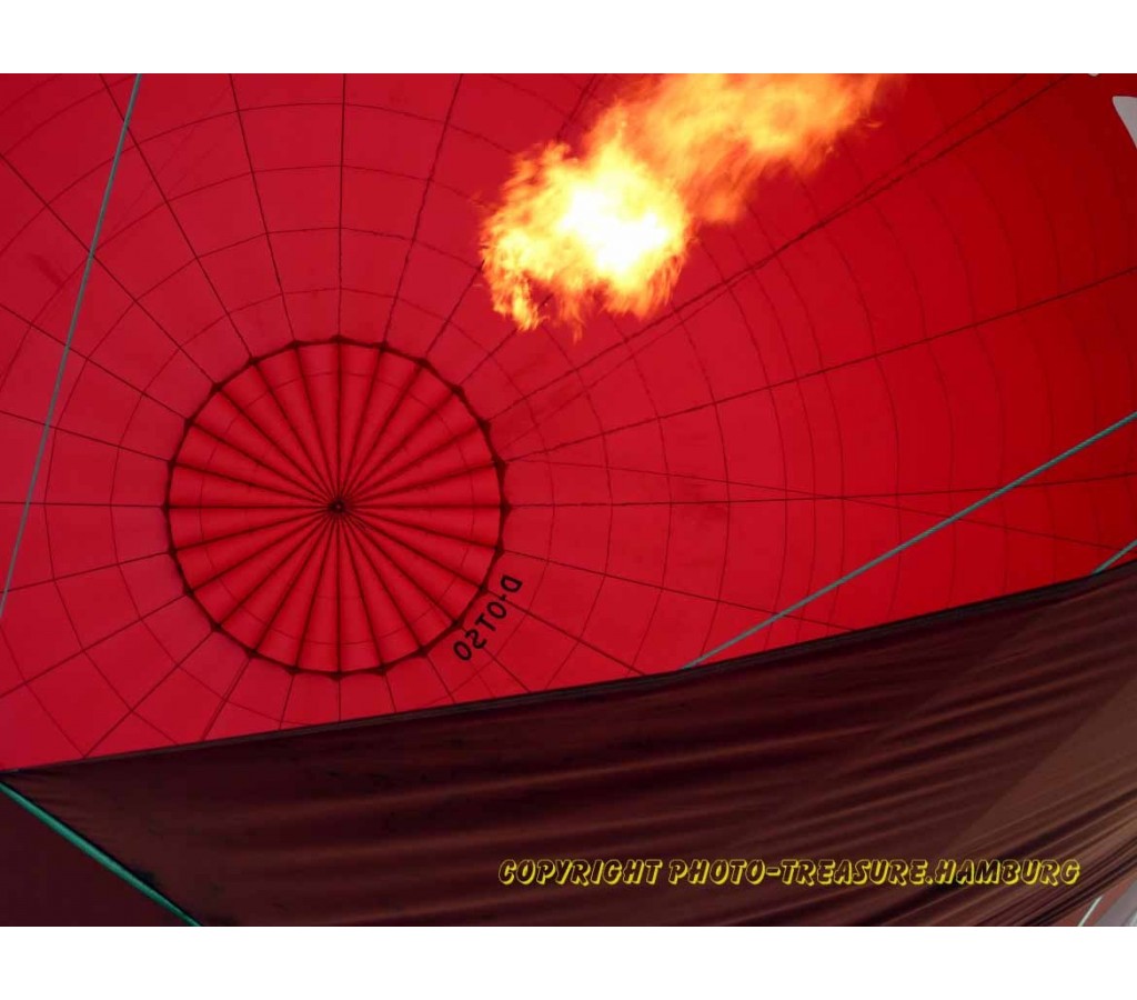 Blick in den aufgerichteten Ballon mit Brennerflamme.