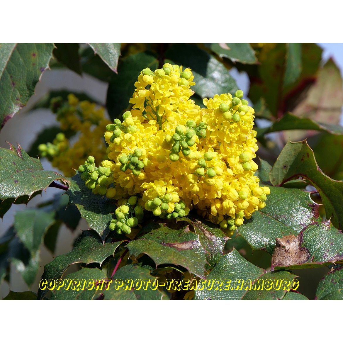 Die Mahonie erfreut zum Anfang des Frühlings mit einem traubenförmigen gelben Blütenstand. Mahonien sind ursprünglich in Asien, im Himalaya und auf dem amerikanischen Kontinent heimisch.