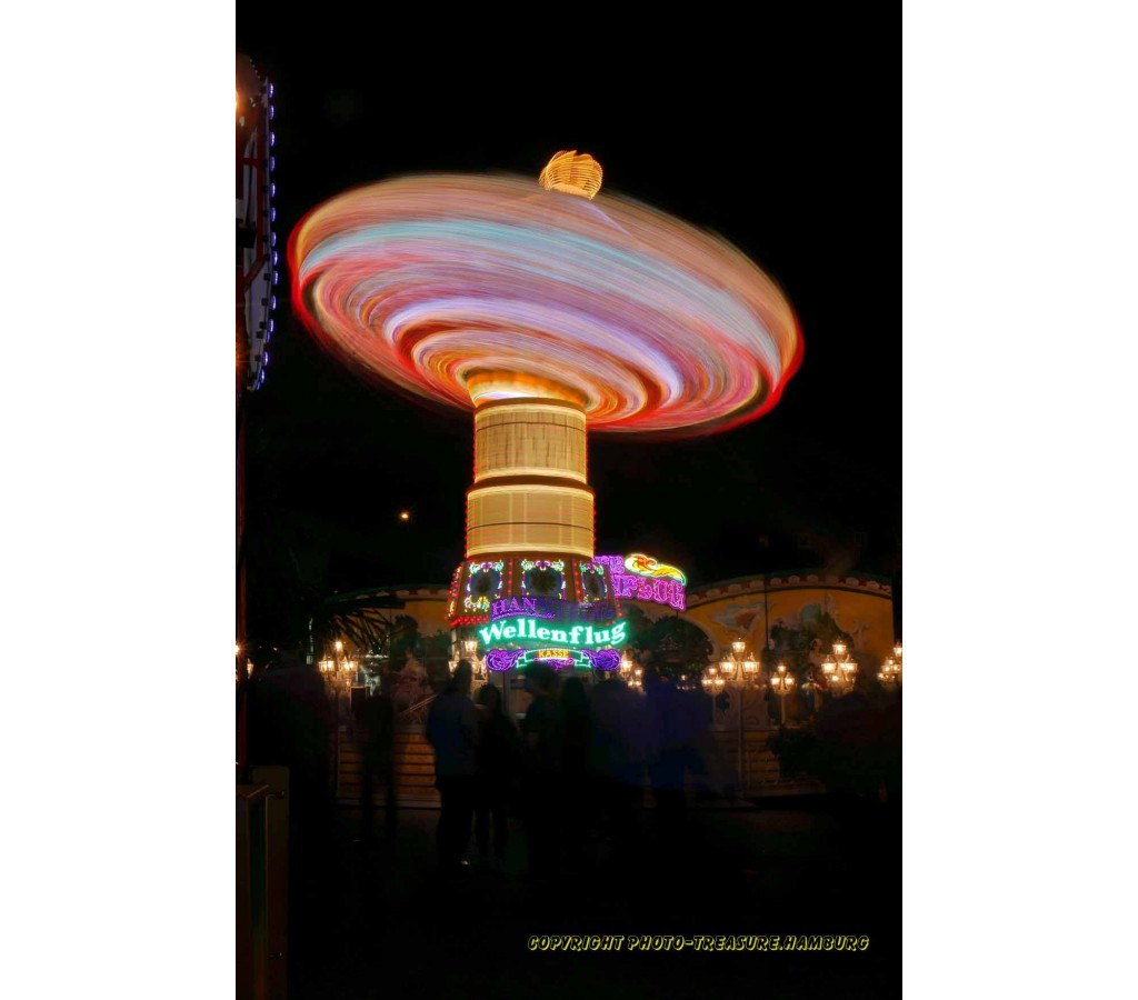 Kettenkarussel "Wellenflug" in Langzeitbelichtung.