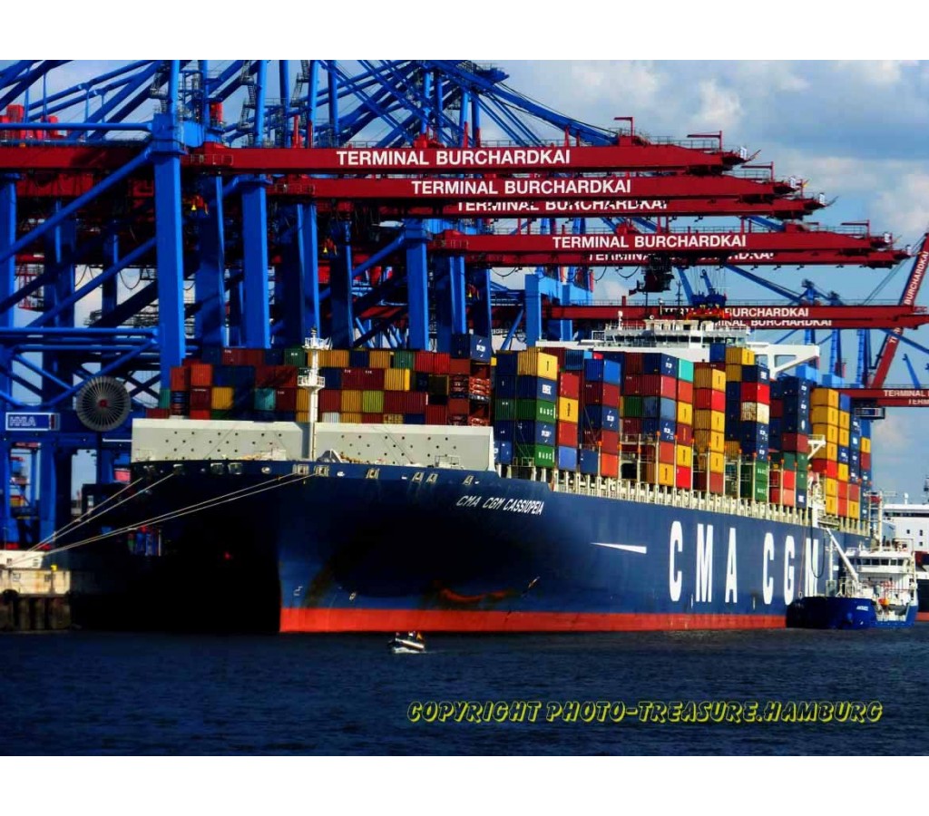 Containerschiff am Terminal Burchardkai im Hamburger Hafen.