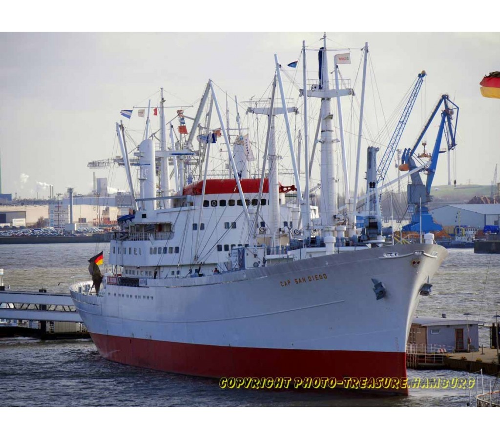 Die "Cap San Diego" ist ein noch fahrtüchtiges ehemaliges Stückgutschiff.