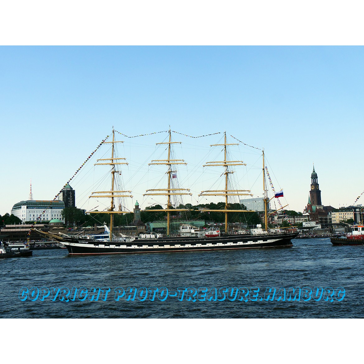Das Foto zeigt das Schiff zur Auslaufparade in Hambur 2018.