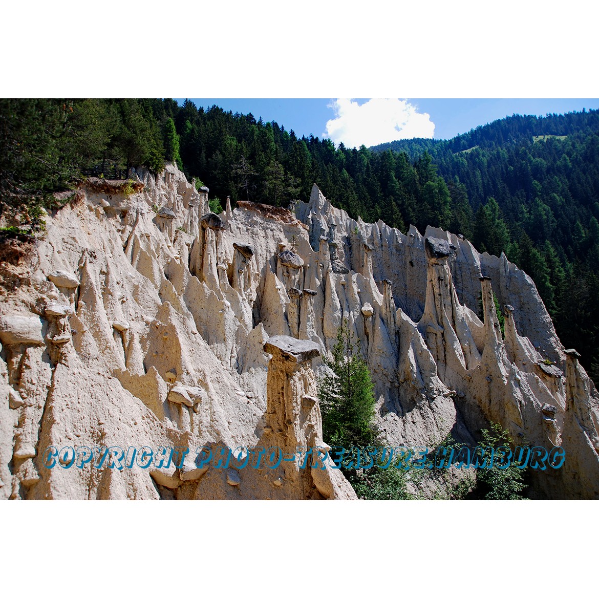 Diese Erdpyramiden sind steinbedeckte Lehmsäulen in Süd-Tirol. Sie entstanden durch eine Erosion des Bodens.
