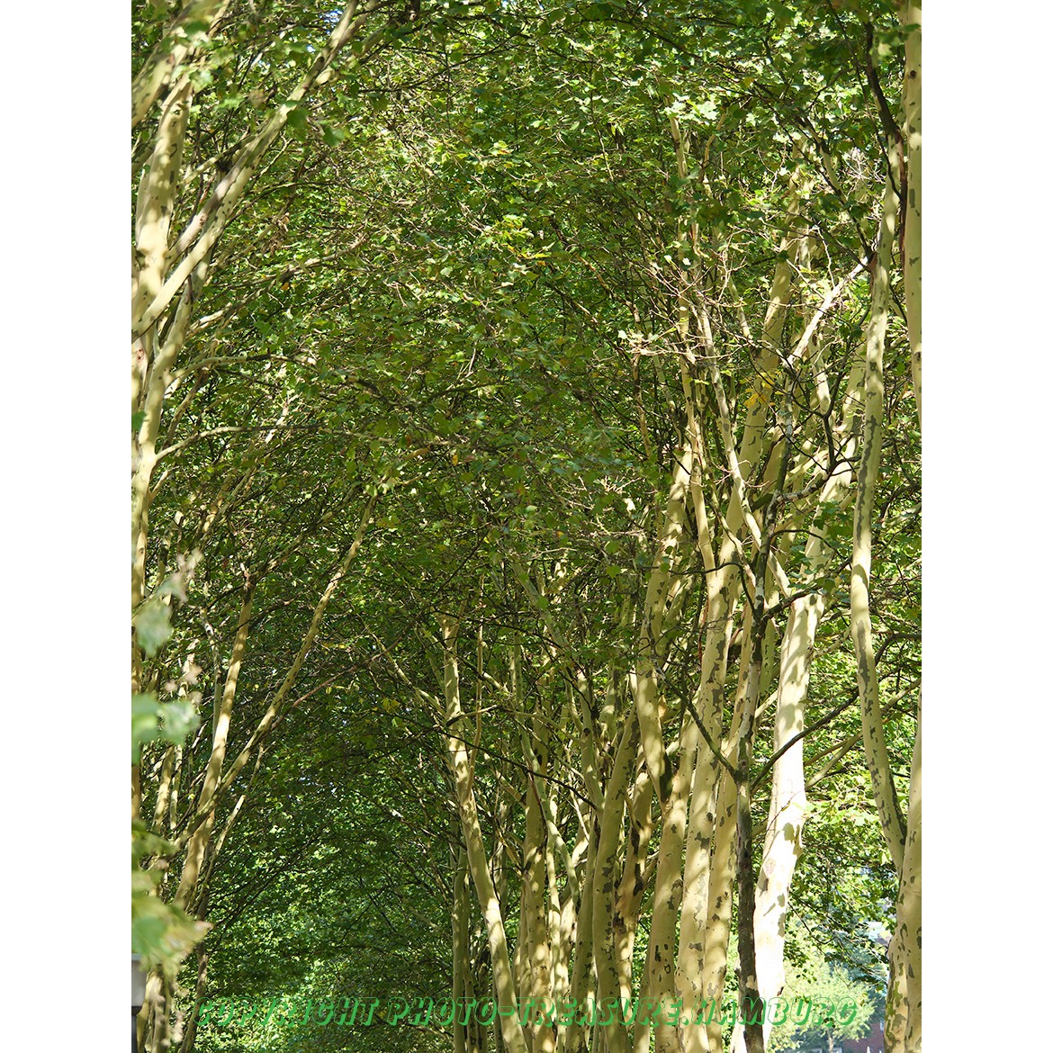 Ausschnitt einer Platanenallee direkt am Hafen in Hamburg. Die Allee verbindet den Hafen mit der St- Michaeliskirche ( im Volksmund "Michel" genannt)