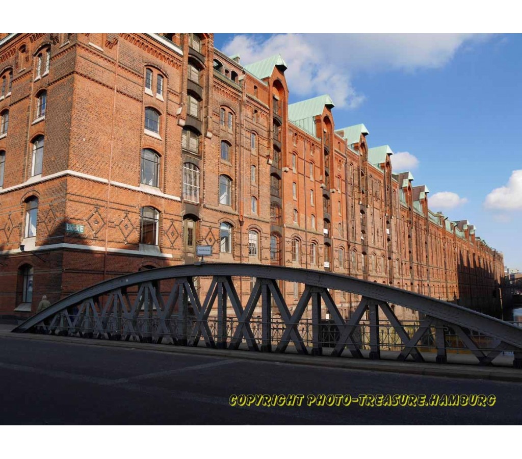 Teilansicht der Speicherstadt Hamburg. Blick von der Sandbrücke.