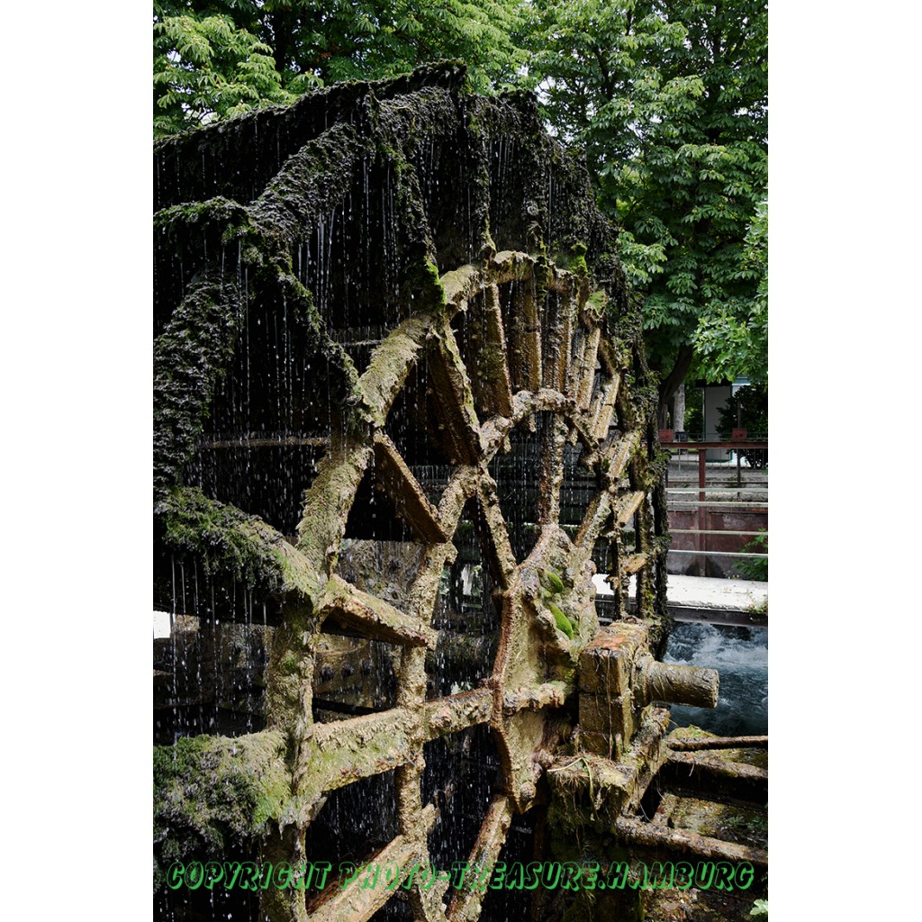 Ein etwa 200 Jahre altes Wasserrad aus Holz in L´Isle-sur-la-Sorgue, eine französische Gemeinde in der Region Provence-Alpes-Côte-d´Azur.