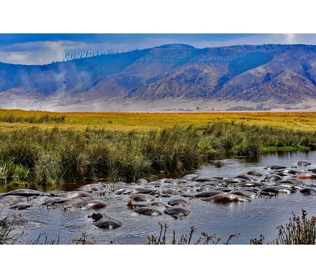 Diese Flusspferde lassen es sich in einem Hippopool im Ngorongoro-Krater am Rande des Serengeti-Nationalparks gut gehen.