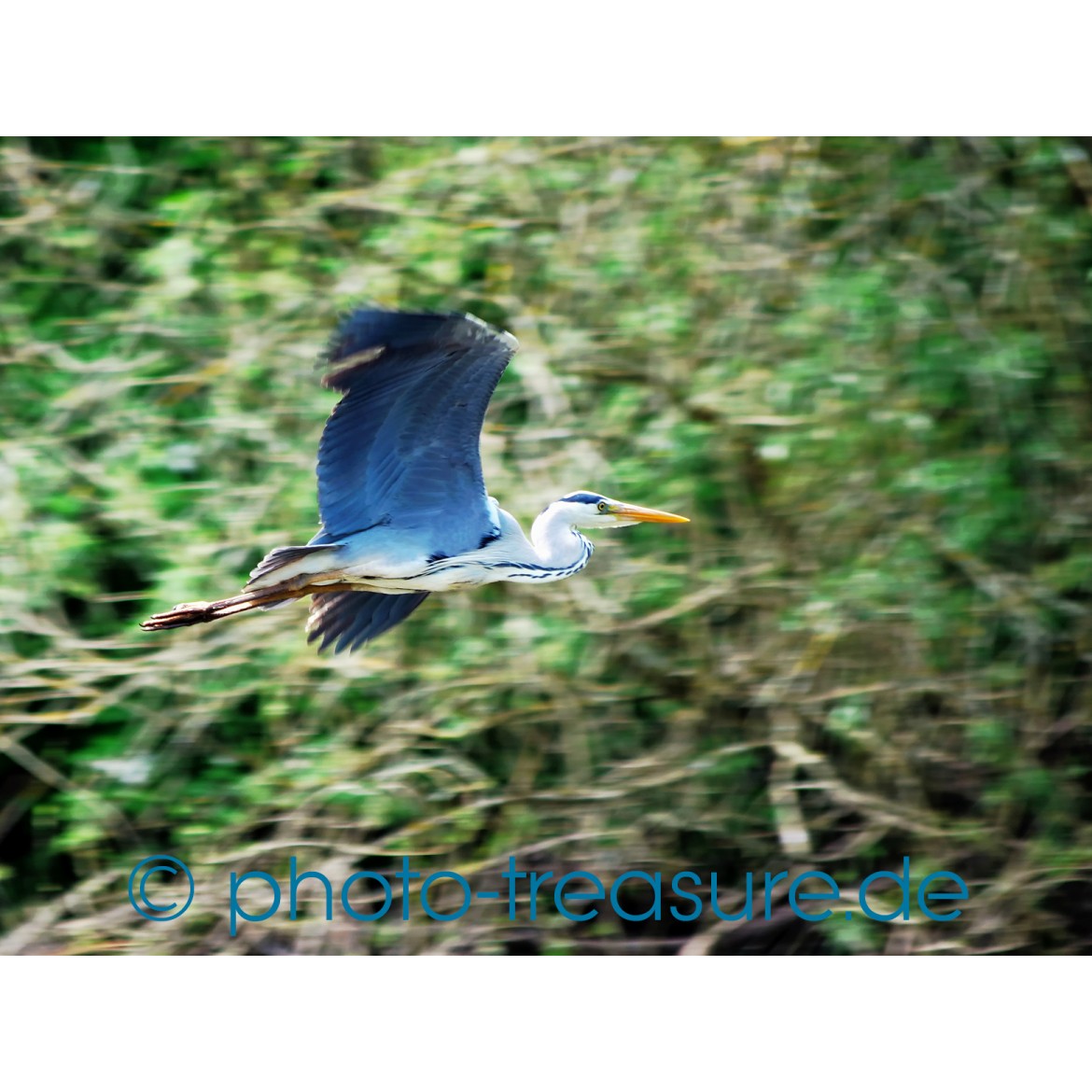 Um einen Fischreiher im Flug zu fotografieren muss der Fotograf geduldig wie ein Fischreiher auf der Jagd sein.