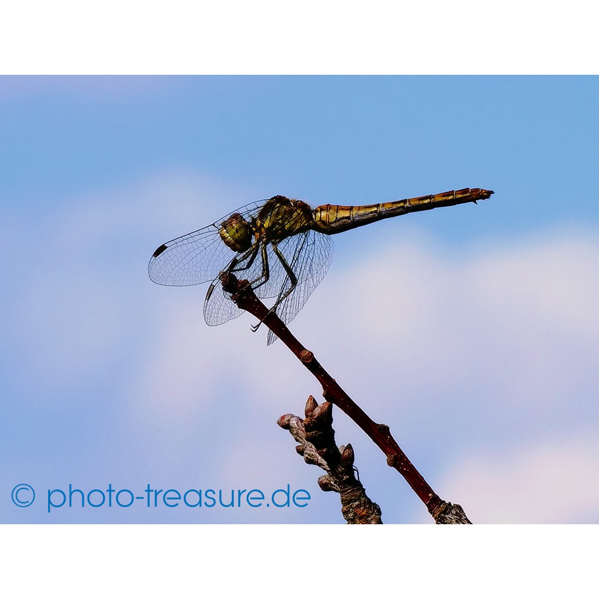 Die gefleckten Heidelibellen werden als gefährdet eingestuft. Dieses Foto entstand im Naturschutzgebiet der Boberger Niederung im Südosten Hamburgs. Es ist ein Naturschutzgebiet mit Moor-, Heide-, Dünen-, Geest- und Marschlandschaften.