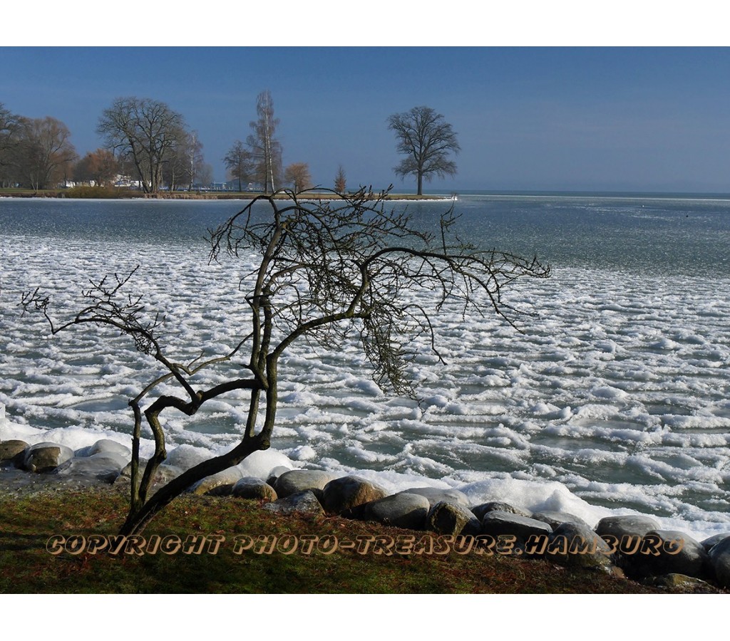 Interessante Eisstrukturen auf dem Schweriner Innensee am Schweriner Schloss.