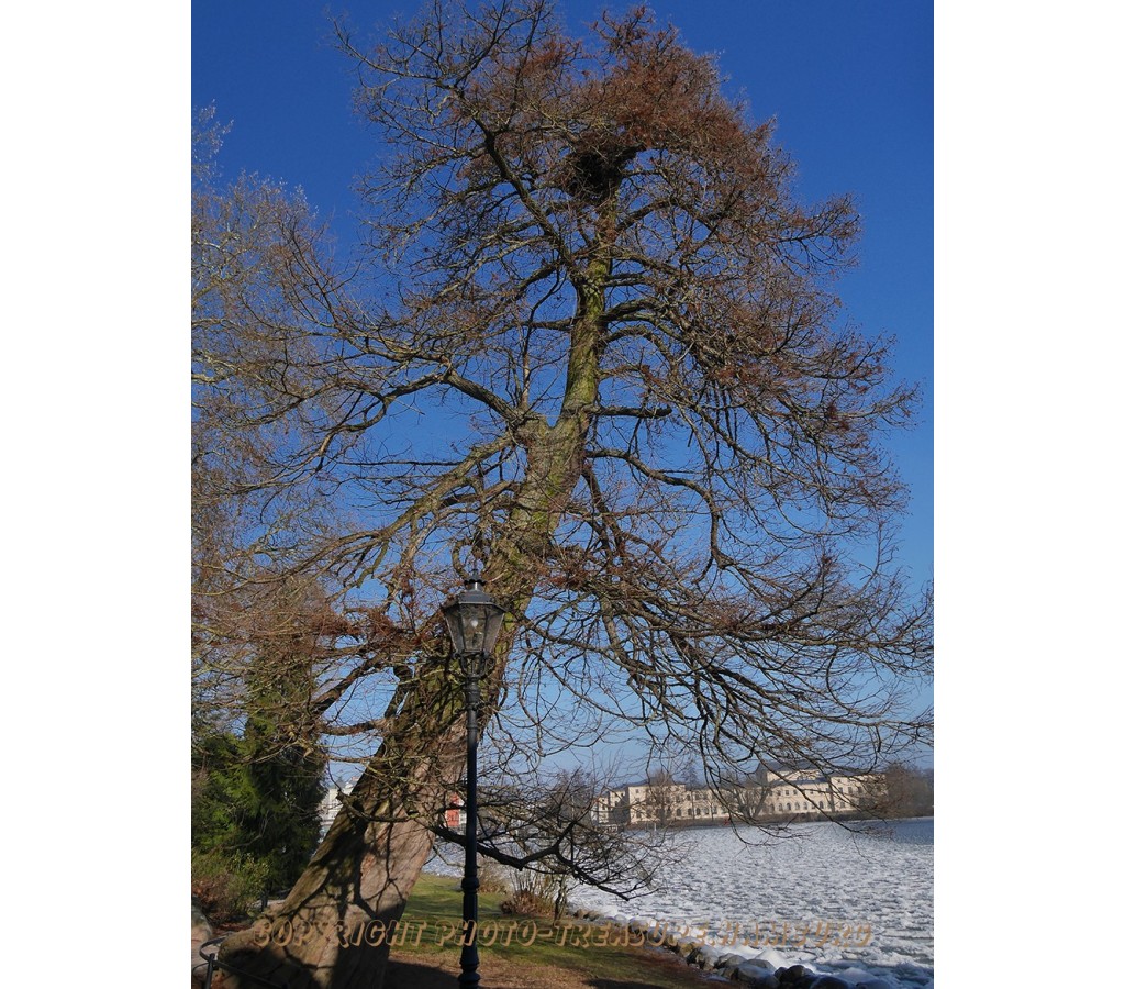 Diese sehr alte Sumpfzypresse steht auf der Schweriner Schlossinsel.
